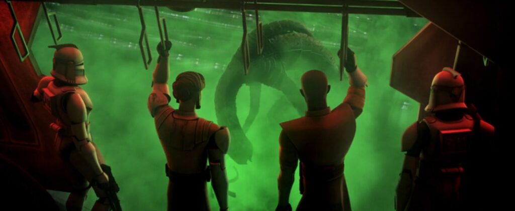 不気味な惑星で謎の巨獣を討伐したジェダイ師弟。オビ=ワンは自らの行為に疑問を抱く。