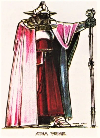 実はこのキャラクターの祖型は古く『エピソード6/ジェダイの帰還』公開翌年にまで遡ります。当時スター・ウォーズ フィギュアの販売を手掛けていたケナー社は、三部作完結後も独自のシリーズ構想を企画します。最終的にルーカスフィルムのGOサインが出なかったため頓挫したものの、ある程度まで進められた物語概要に登場したのがAtha Primeなのです。