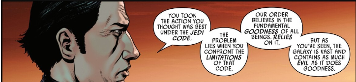 本シリーズを貫く重要な言葉が、第9ストーリーアークで語られる若き日のドゥークーの台詞です。