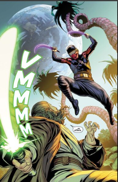 第1ストーリーアーク『THE INVASION OF SYRINX PRIME 』では、辺境惑星SYRINX PRIMEにおける紛争調停が描かれます。そこにはヨーダやメイス・ウィンドゥ、キ=アディ=ムンディ、シャアク・ティ、若きオビ=ワン、Vetna MooncrestBerem KhanaSeera Longaといった初出ジェダイたちも加わります。
