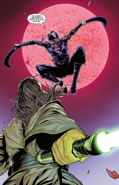 それが、後にCORLIS RATHという名だけが明らかになる謎の刺客です。侵略に対する調停任務に邁進するジェダイ一行を、その中でもなぜかクワイ=ガンだけを強襲した刺客は高い戦闘能力で彼を翻弄。やがて追い詰められたものの煙幕を張って逃走するという忍者顔負けの印象を残す彼の正体は何なのか。そしてクワイ=ガンだけを襲う理由は何なのか。それが、多くのストーリーアークで構成される本シリーズにおいて、唯一の一貫した謎とテーマとなるのです。